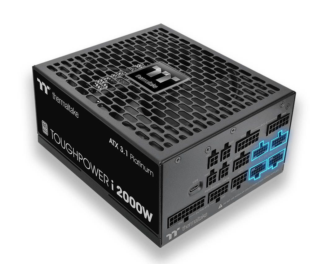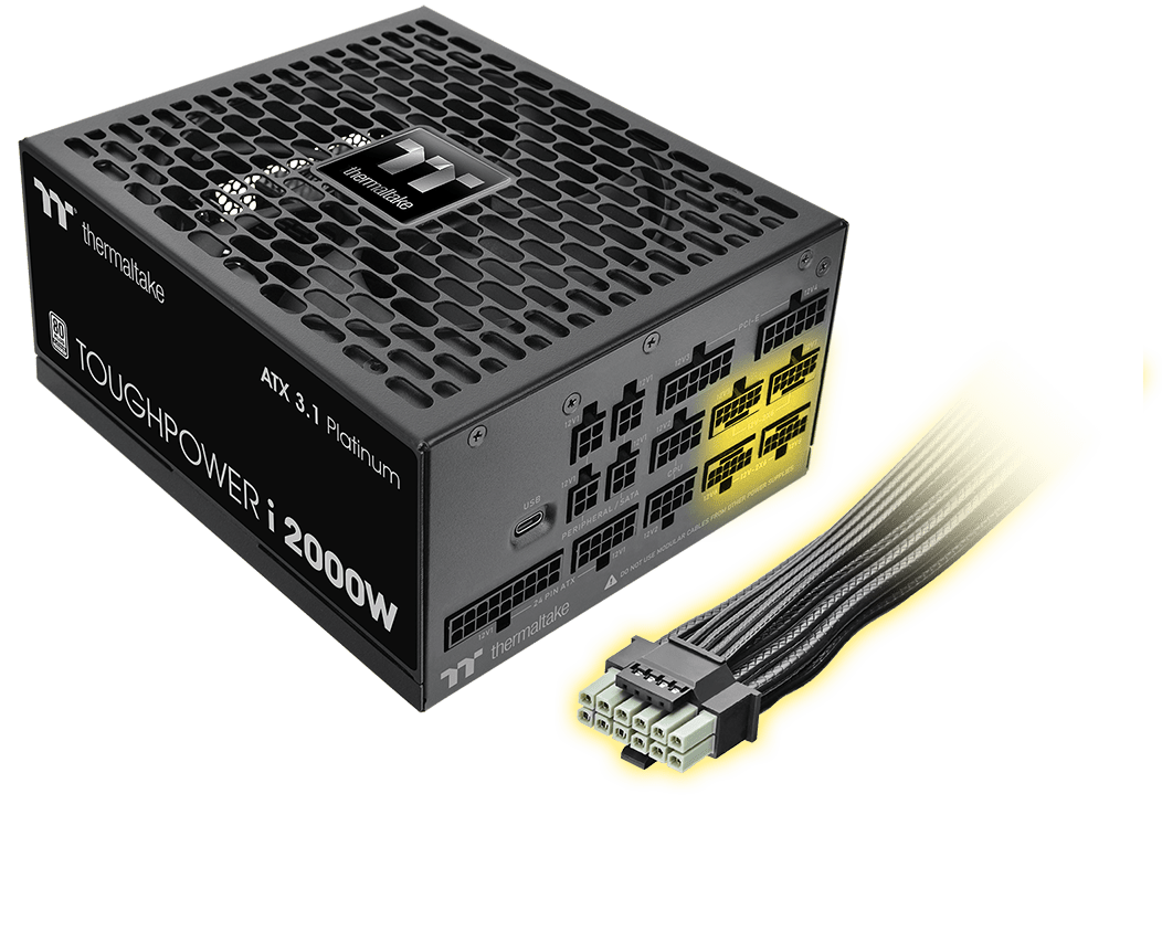 Toughpower i2000W is an 80 PLUS Platinum 230V certified digital PSU, fully compatible with ATX 3.1 specifications and built for high-performance workstations supporting up to 2000W and four native PCIe 12V-2x6 connectors.